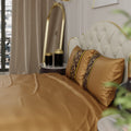 Step into a world of sheer elegance with our Grandeur of the Sun King satin bedsheet set. The rich gold hue, reminiscent of precious treasure, infuses your bedroom with a sense of lavishness. Inspired by the grandeur of the Palace of Versailles, this bedsheet boasts a regal printed panel design, transporting you to a world of sophistication and refinement, making it a must-have for those who appreciate the finer things in life.