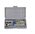 Product Description: Handy multi-functional toolset for day to day repair work, it has almost all sizes of socket plugs included in the set. It has a soft handle grip for user convenience. Package Contains : 1. 14 Socket : 4mm, 4.5mm, 5mm, 5.5mm, 6mm, 6.5mm, 7mm, 7.5mm, 8mm, 9mm, 10mm, 11mm, 12mm, 13mm 2. 14 Pcs 1/4" imperial sockets: 5/32in, 3/16in, 7/32 in, 1/4 in, 9/32 in, 5/16 in, 11/32 in, 3/8 in, 13/32 in, 7/16 in, 15/32 in, 1/2 in, 17/32 in, 9/16 in 3. 3 pieces 1/4" 8 points imperial sockets: 1/4 in, 5/16 in, 3/8 in 4. 3 pieces 3/8" sockets: 15mm, 5/8in 13/16in 5. One-piece 1/4" to 3/8? adapter 6. One-piece 3/8" 3 inches extension bar 7. One-piece 1/4" spinner handle 8. One-piece 3/8" plastic pad 9. One-piece 3/8" ratchet wrench 10.One plastic storage box Material: Metal & Plastic Item Weight: 1032gm